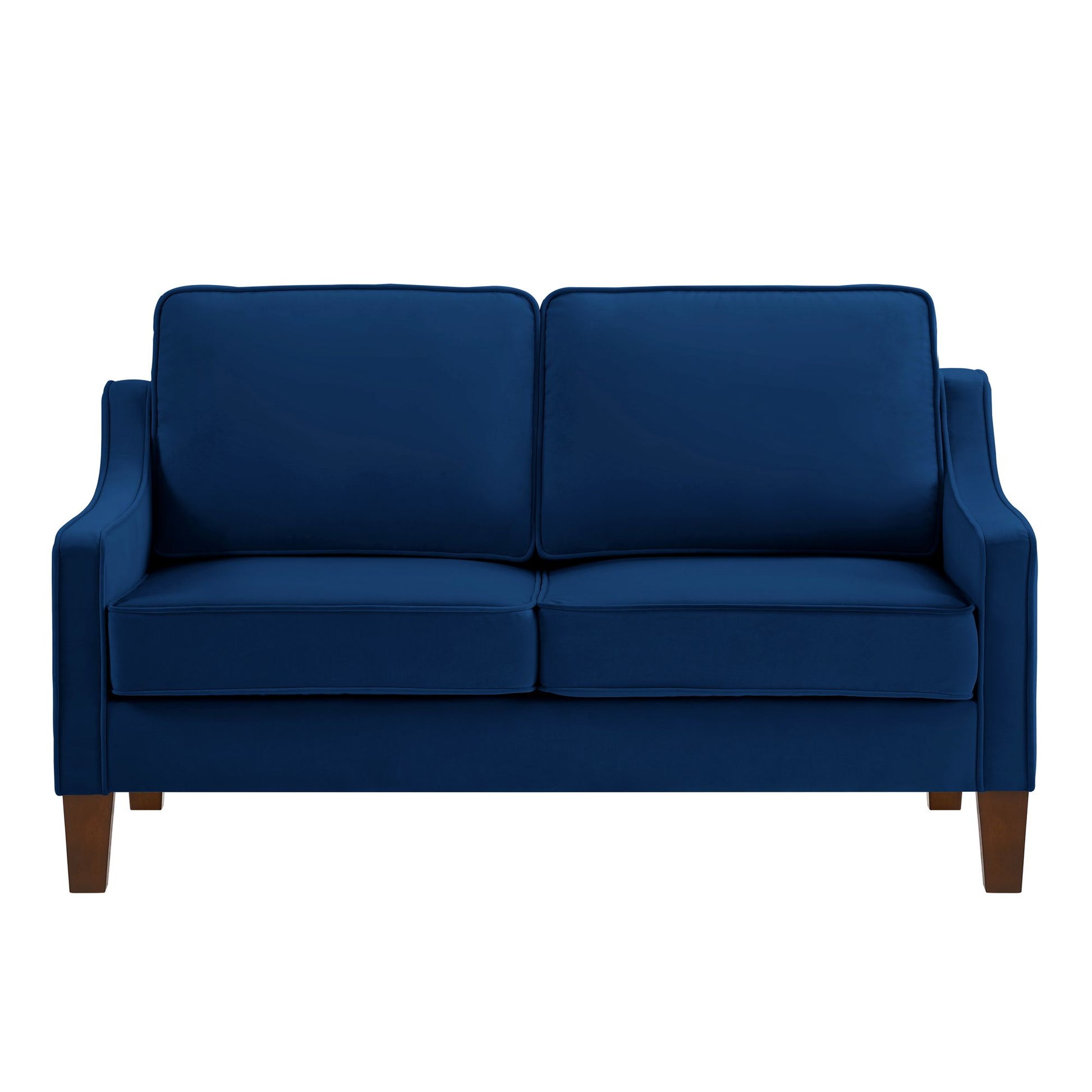 Modern Loveseat sofa for Living Room, Upholstered Velvet Small Couch with Wooden Legs for Livingroom Bedroom, Navy