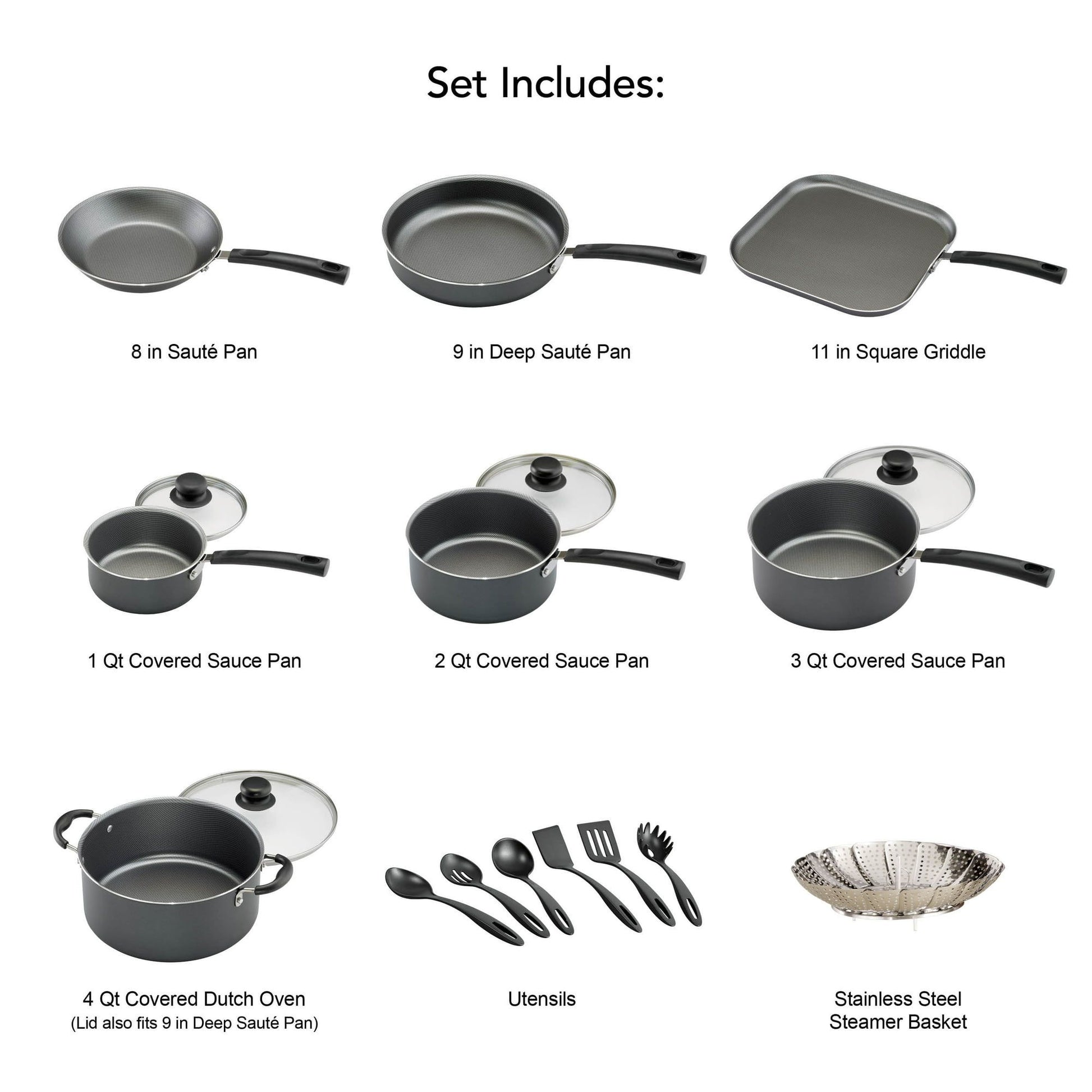 Tramontina Primaware 18 Piece Non-stick Cookware Set, Steel Gray