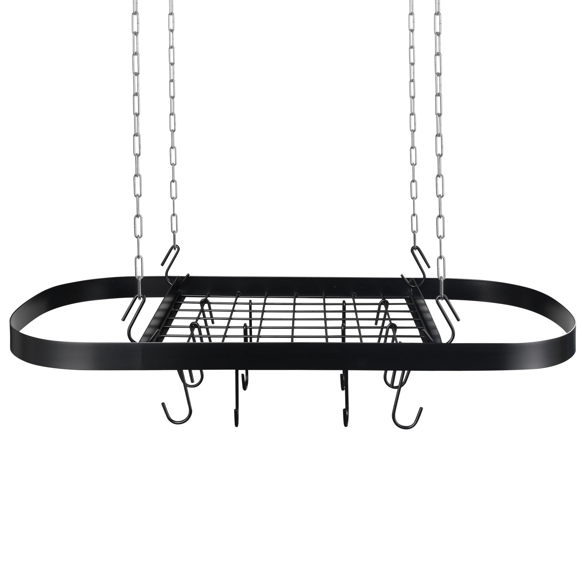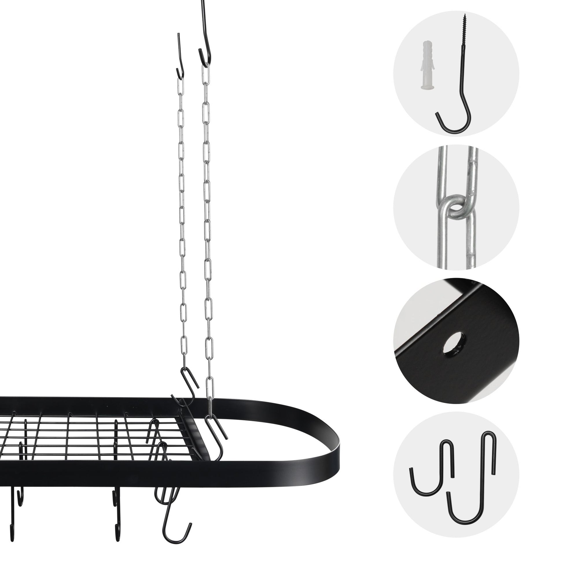 Classic Appearance - Aquaterior Ceiling Mount Oval Cookware Rack presents black color with simple design; shows modern and minimalist style; a stylish storage shelf to decorate your kitchen and keep cookware organized and tidy