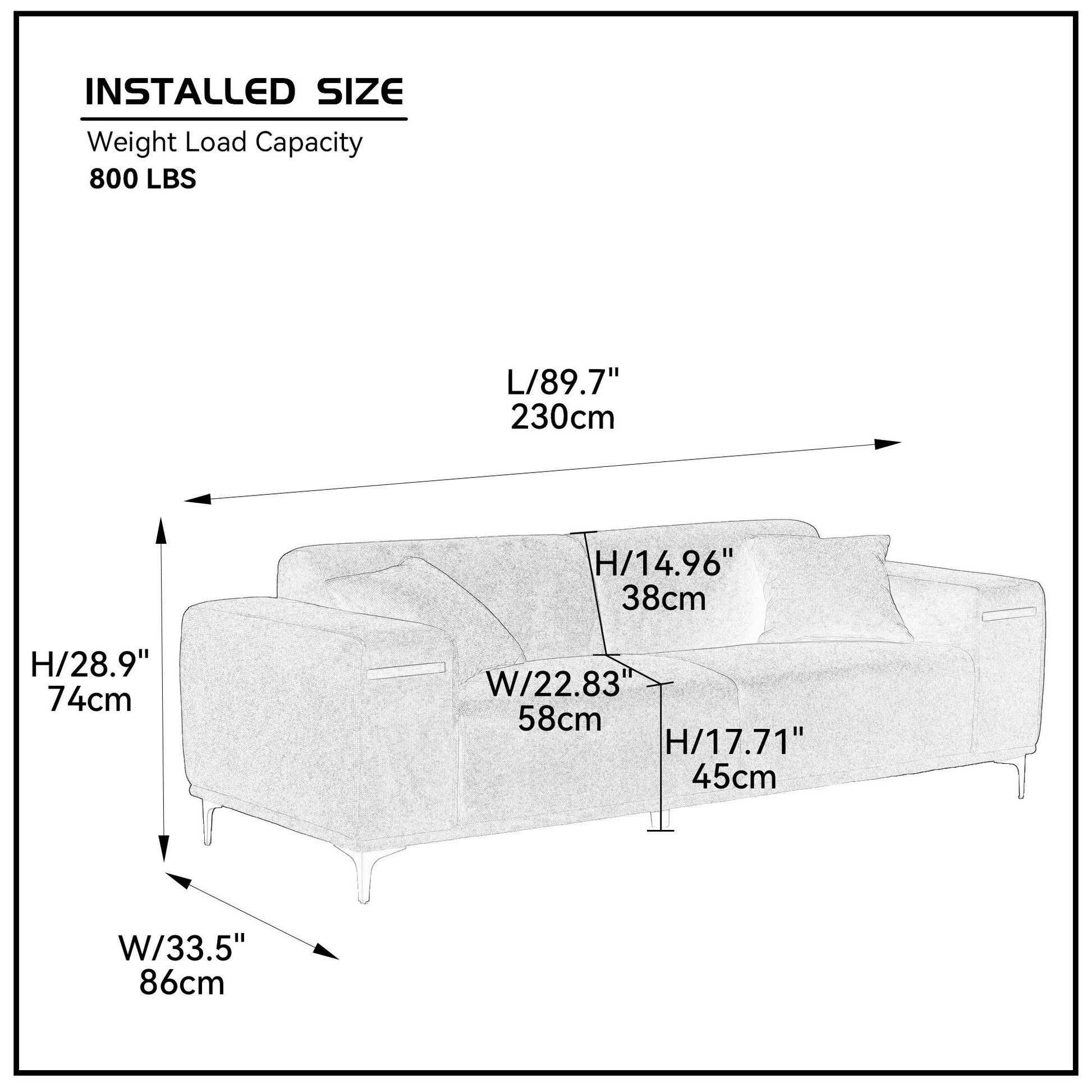 Mid-Century 3 Seater Sofa with 2 Stretchable Walnut Pad Modern Fabric Upholstered SofaSimple design meets convincing comfort - no wonder our 3-seater sofa is an asset to any living space. The discreet design with a fabric made of skin-friendly flat weave and metal feet can be combined with any interior design concept. Thanks to a selection of modern colors, you can decide for yourself whether your new favorite spot should be an attractive splash of color or blend particularly harmoniously into your living space thanks to a plainer shade.When setting up, you have every freedom, after all, the back is also covered with the original fabric. Whether standing freely in the room or against a wall, the comfort of the 3-seater is convincing everywhere.Large seatingEasy assembly2 Stretchable Walnut Pad in the sofa arm for coffee/teaThe cushion design conforms to the human body mechanics, both comfortable and durable