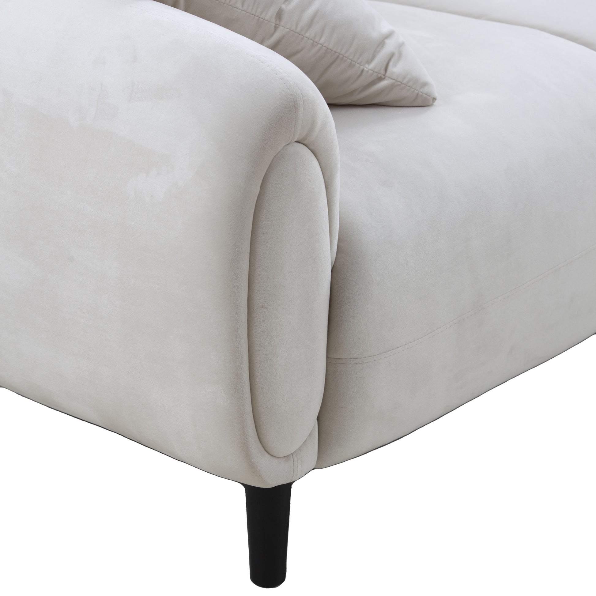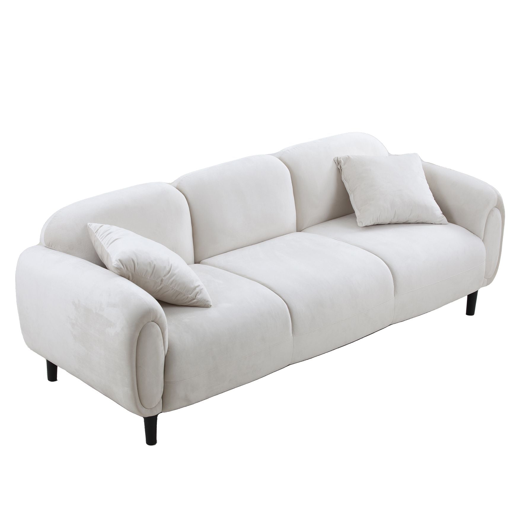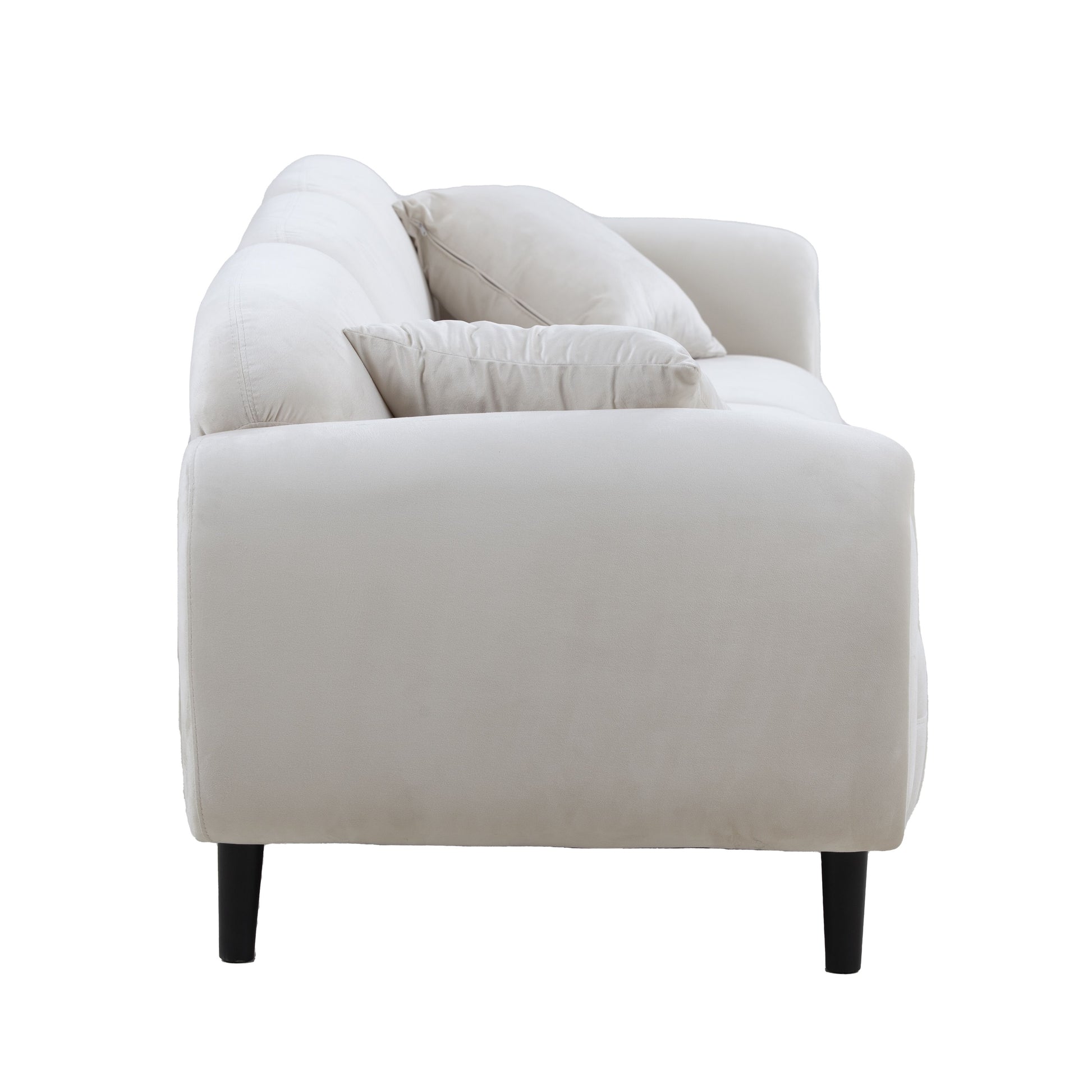 Mid Century Modern 3 seater Couch Velveteen sofa with solid wood leg for Living Room, bedroom, livingroom Beige